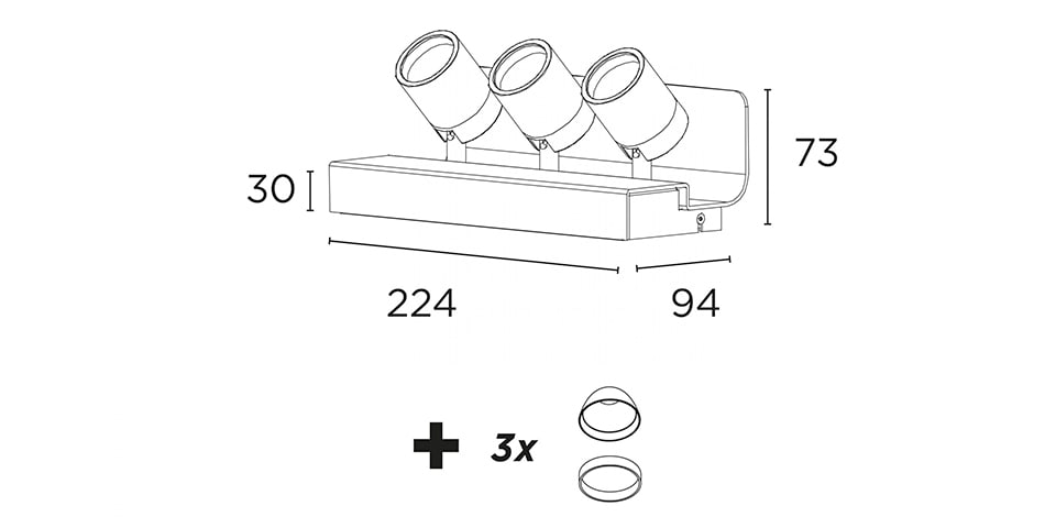 EXENIA SRL - EXE353425052/9530 PLURIEL WALL 3X 9W NERO OPACO 9530