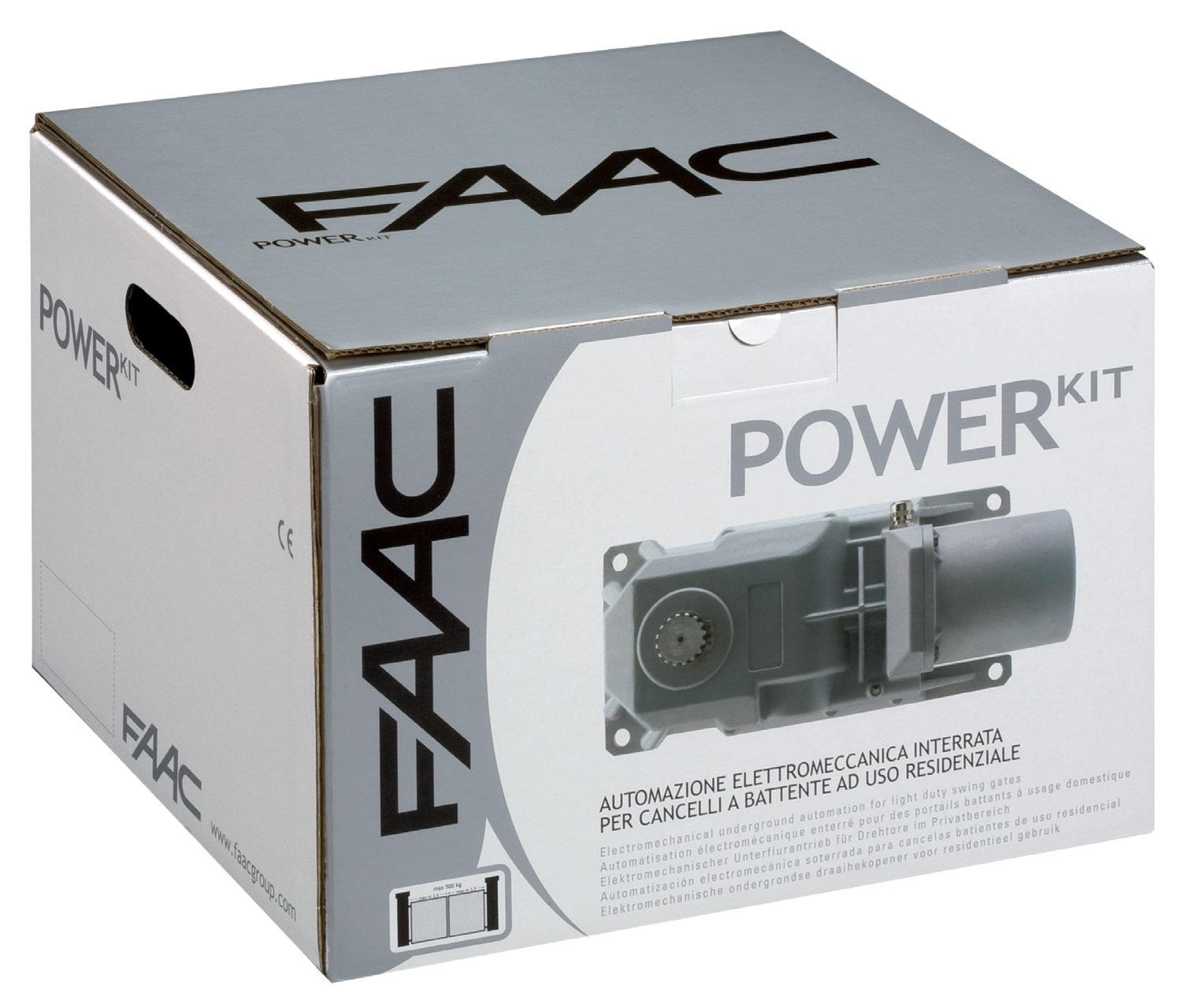 POWER KIT 230V GREEN: Operatore elettromeccanico 230V interrato per ante a battente ad uso residenziale in kit. Larghezza max singola anta: 2 - 3,5 m (con elettroserratura). Peso max: 500 Kg. Frequenza d'utilizzo: S3 - 30%. Il kit contiene due attuatori elettromeccanici, accessori per l'installazione, chiavi di sblocco, due condensatore di spunto 12,5µF 400V, una scheda elettronica 230V, una ricevente 433Mhz, una trasmittenti XT2 433Mhz, una coppia di fotocellule, un pulsante a chiave e un lampeggiante XLED. La cassetta portante (da ordinare separatamente) comprende: una cassetta portante, un coperchio in acciaio inox, una staffa di sostegno anta dotata di sistema di sblocco a leva, due chiavi di sblocco, accessori per l’installazione. 770N si caratterizza per: integrazione in qualsiasi contesto architettonico (operatore invisibile), possibilità di accedere all’operatore senza rimuovere l’anta, sblocco manuale con doppia leva accessibile sia dall'interno che dall'esterno della proprietà (Brevettato). La gamma di accessori FAAC, inclusa nel kit, combina sapientemente tecnologia, efficienza, sicurezza e design.