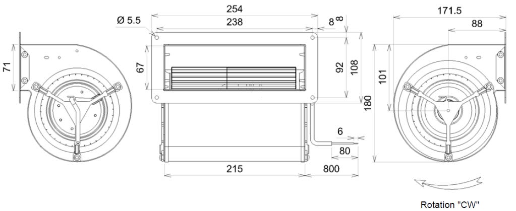 Ventilatore centrifugo a doppia aspirazione con coclea e flangia