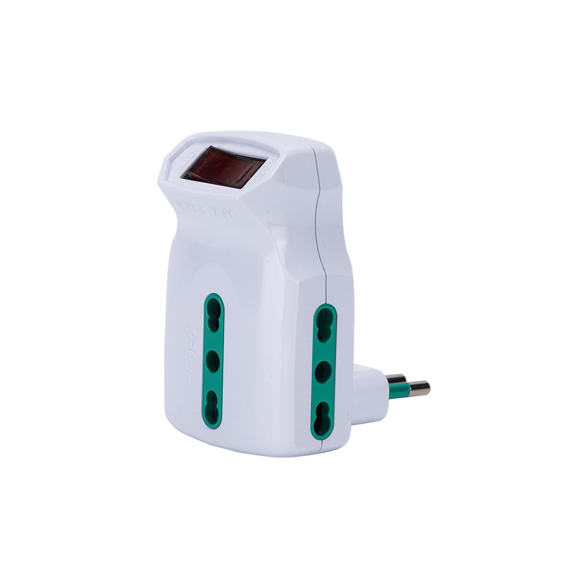 Adattatore triplo\nspina italiana 2P+T 10A\n3 prese bipasso italiane 2P+T 16A\n+ interruttore automatico di sovraccarico, colore bianco
