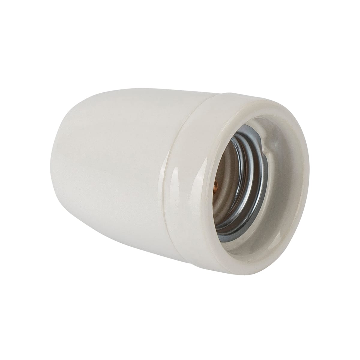 Portalampada E27 in ceramica\nblocca cavo con ghiera, colore bianco