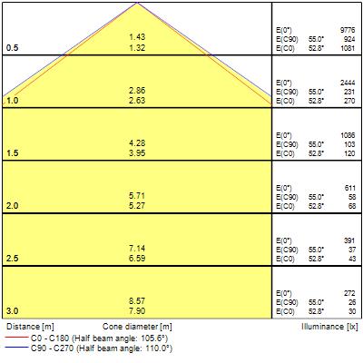 Flusso luminoso calcolato secondo la norma IEC 62722-2-1: