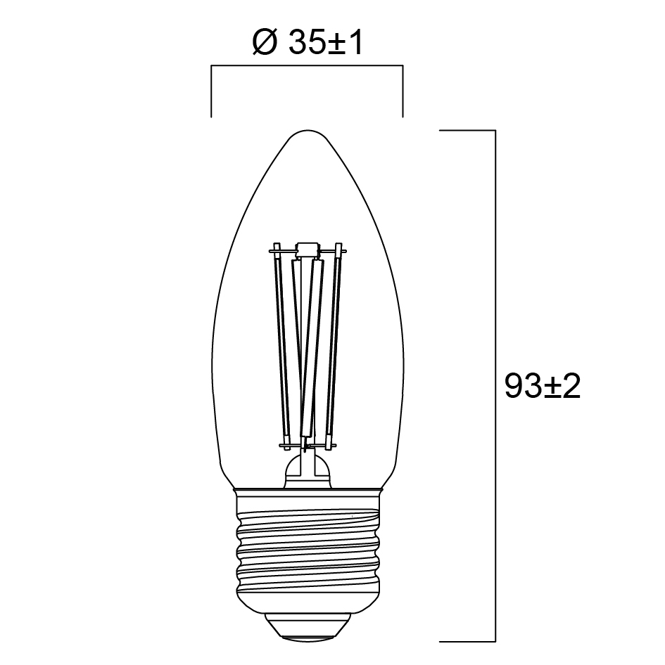 LAMPADA LED VETRO A FILAMENTO TOLEDO RETRO CANDELA SATINATA 4,5W 470 LUMEN (470LM) 827 2700K LUCE BIANCA CALDA 15000 ORE ATTACCO E27 EQUIVALENTE A INCANDESCENZA DA 40W CLASSE ENERGETICA F