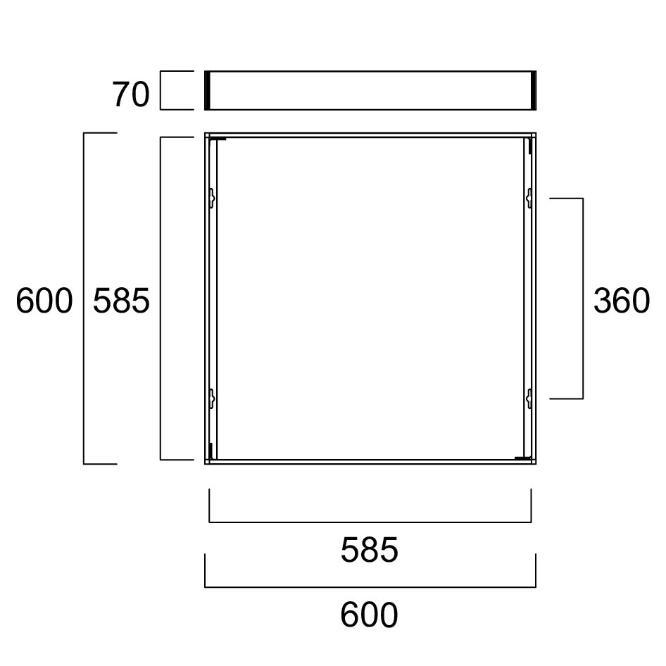 KIT PLAFONE PER MONTAGGIO PANNELLI A PLAFONE DIMENSIONI 600X600 GAMME START PANEL ECO, START PANEL, QUANTUM, QUADRO E OPTICLIP. RAL9003. ALTEZZA 70 MM.