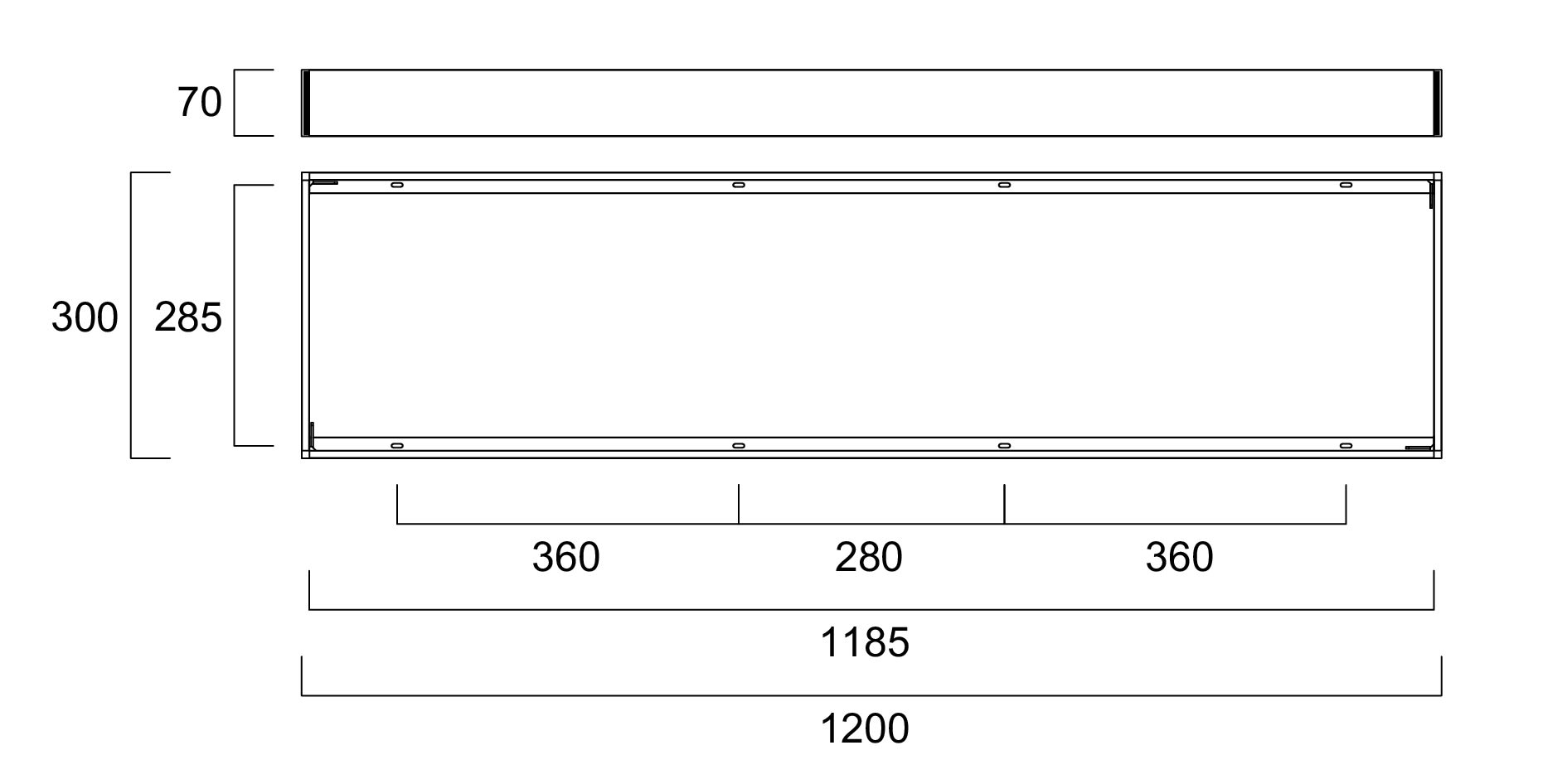 KIT PLAFONE PER MONTAGGIO PANNELLI A PLAFONE DIMENSIONI 1200X300 GAMME START PANEL ECO, START PANEL, QUANTUM, QUADRO E OPTICLIP. RAL9003. ALTEZZA 70 MM.
