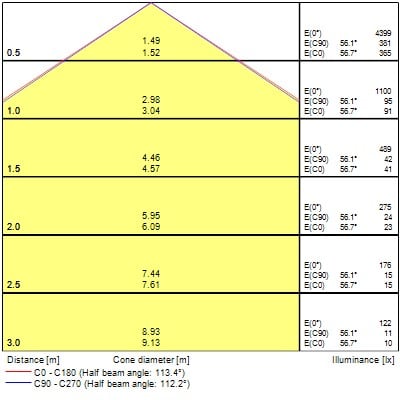 Flusso luminoso calcolato secondo la norma IEC 62722-2-1: