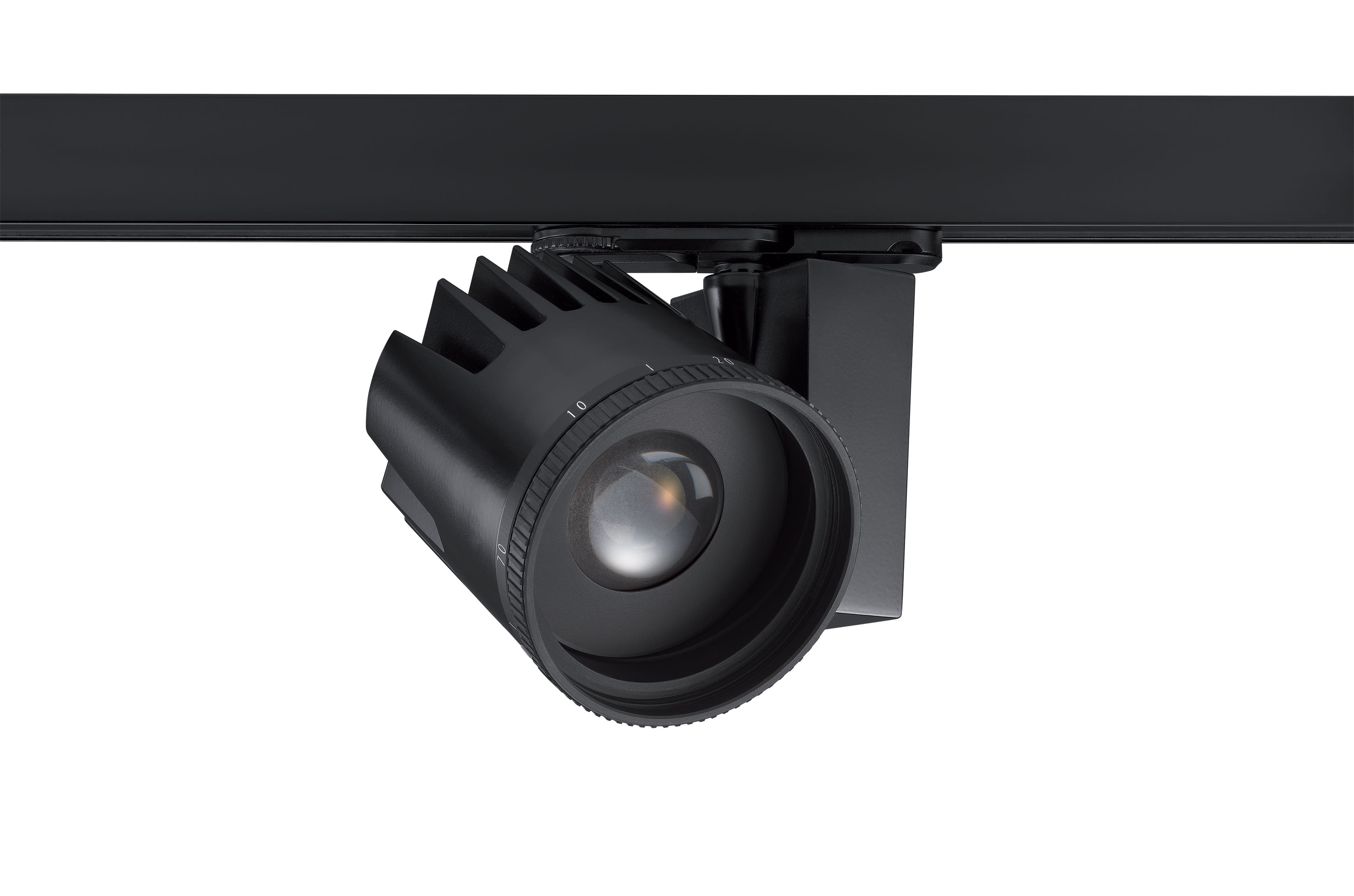 2059326 BEACON XL MUSE 4K DALI L3 BLK Integrated LED spotlight, black RAL 9005, unique soft-touch ring, adjustable beam angle from a 10° spot to a 70° flood, compact and minimalist design, ideal for museum, gallery and high-end retail applications, die-cast aluminium body, passive cooling heatsink, beam angle: 10° spot to 70° flood, optics: aspheric glass lens, colour temperature: 4000K neutral white, total system power: 41W, total fixture output: 2884lm, luminaire efficacy: 70lm/W, LOR: 100%, super highcolour rendering: Ra 97 typical, R9 value at 90, LED Chromacity: 3 step MacAdam ellipse, IR/UV free light source without heat radiation, operating voltage: 220-240V / 50-60Hz, drive current: 1050mA, electronic driver, DALI dimmable, power factor: 0.95, electrical protection: CLASS I, DALI track adaptor, suitable for Concord Lytespan DALI track, ingress protection rating: IP20. IMPORTANT NOTE: This fixture can only be used on the Lytespan DALI or Lytebeam DALI tracks !