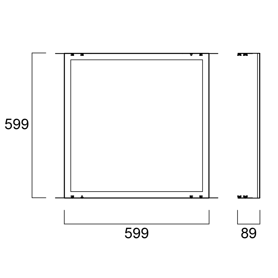 Concealed grid ceiling frame accessory for panels, 599x599x89mm, includes side brackets, screws and washers.