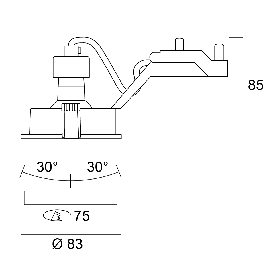 • Angolo di emissione del fascio luminoso - A raggio diffuso