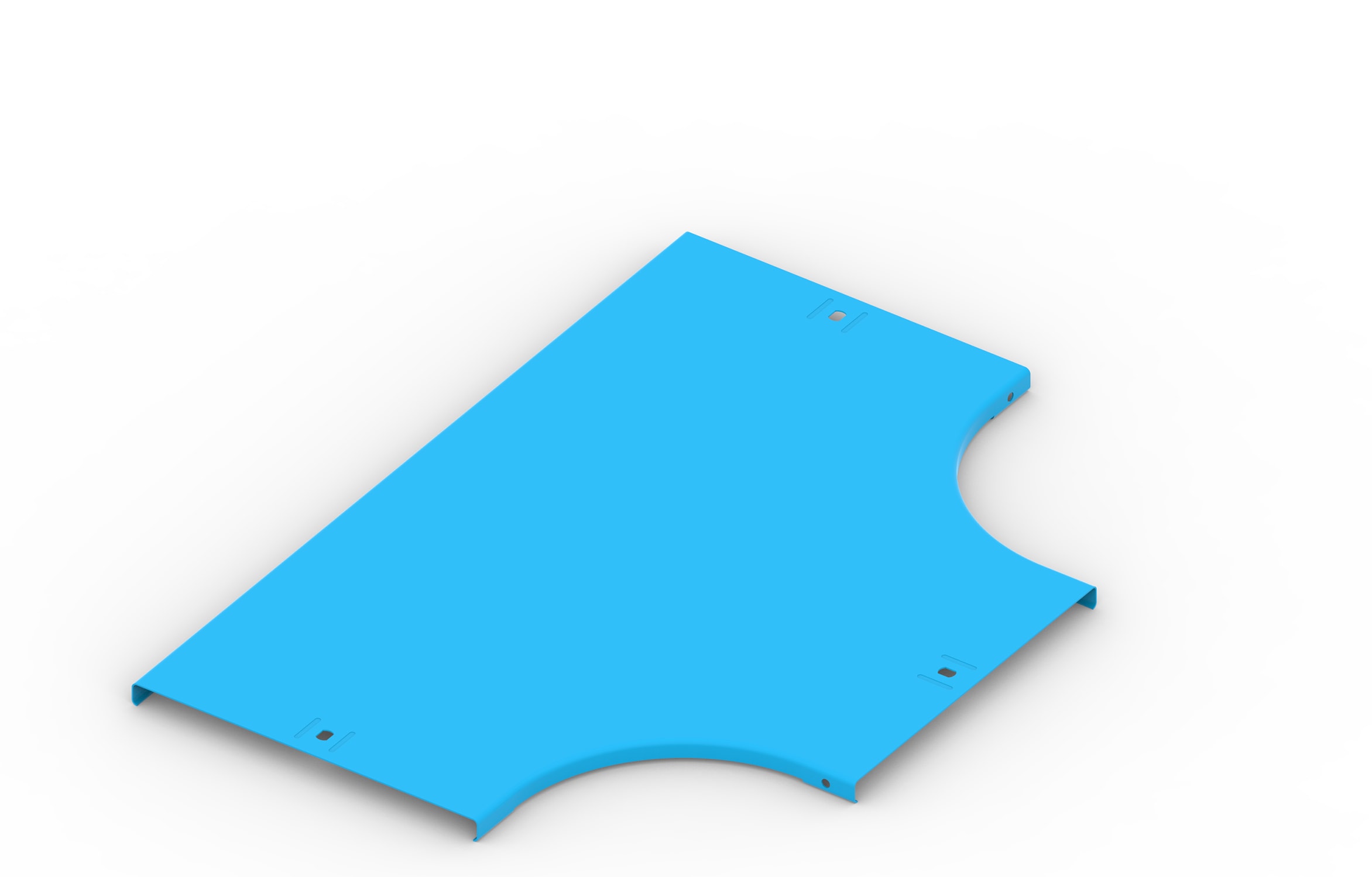 Articolo della serie FEMI3 costituito da coperchio derivazione piana T, raggio R=100mm, in acciaio al carbonio zincato sendzimir con trattamento di protezione superficiale tramite verniciatura a polvere epossipoliestere a circa 180 °C. Colorazione standard blu RAL 5012, disponibili altri colori a richiesta. Si raccomanda per installazioni interne.