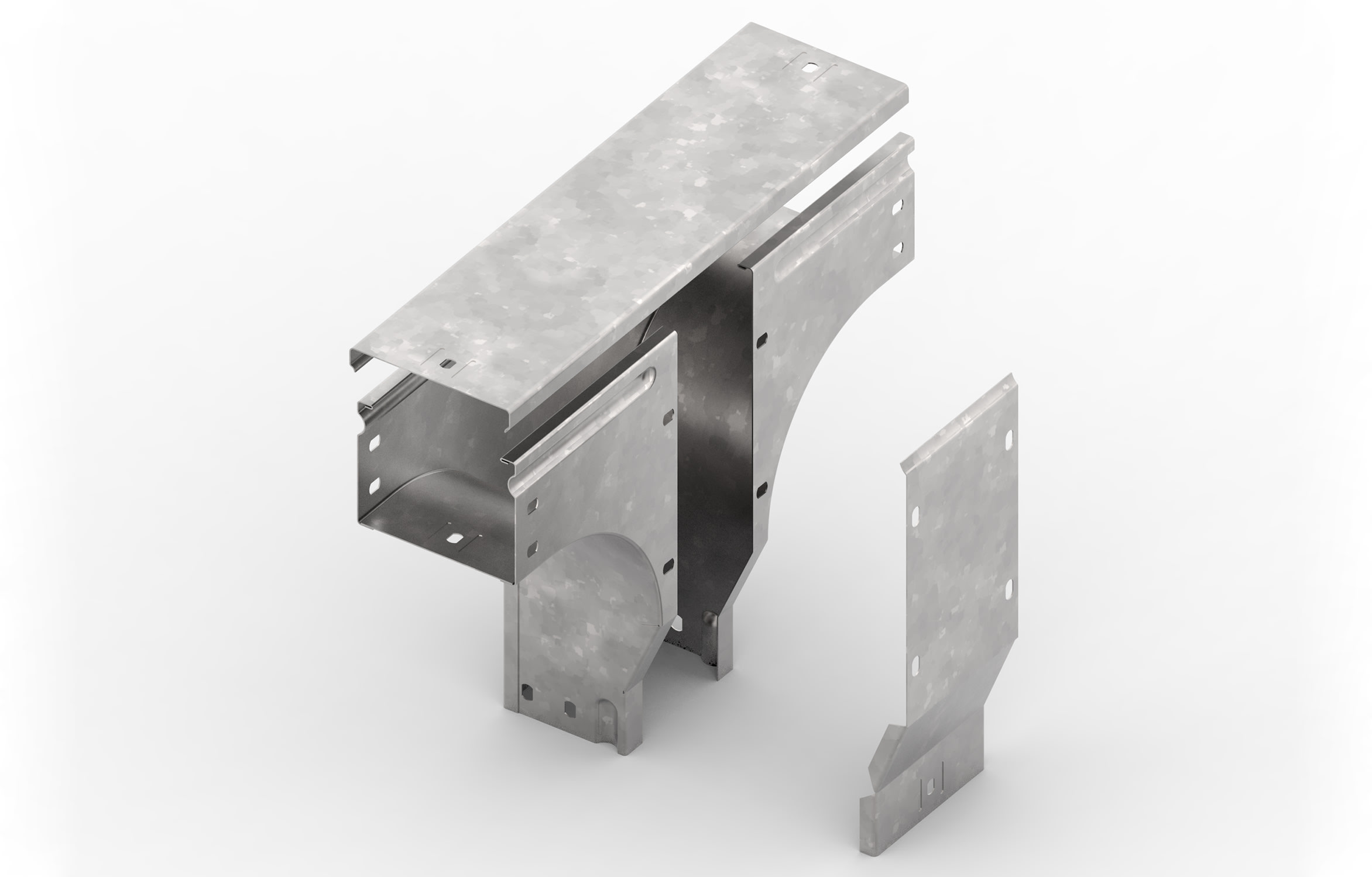 Articolo della serie FEMI3 costituito da derivazione T basso var. piano, in acciaio al carbonio con rivestimento anticorrosivo di zincatura a caldo, applicato per immersione dopo lavorazione in bagno di zinco fuso a circa 450°C, raffreddato in aria o in acqua. Si raccomanda per installazioni esterne, rurali, industriali o interne con ambiente aggressivo.
