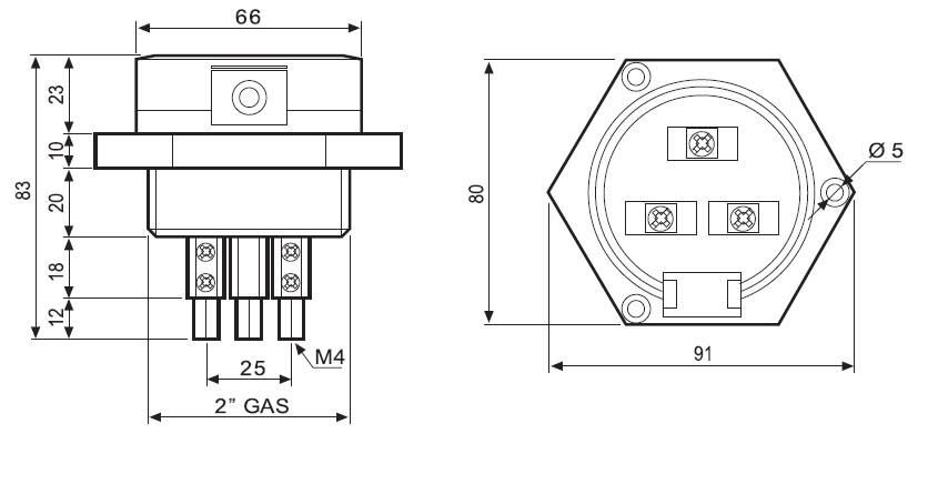 Portaelettodo tripolare. Temperatura massima del liquido 130° C. Materiale elettrodo Acciaio inossidabile (AISI 316L).