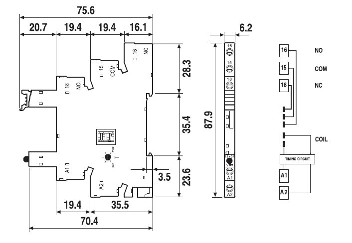 Zoccolo temporizzato Montaggio: barra cieca 35 mm