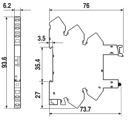 Zoccolo con morsetti a molla Montaggio: barra cieca 35 mm Grado di protezione: IP 20
