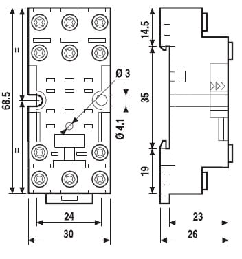 Zoccolo con morsetti a piastrina Montaggio: barra cieca 35 mm (A): 10 Grado di protezione: IP 20 Accessori: Ponticello metallico;moduli di segnalazione e protezione EMC