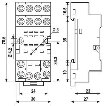 • Tipo di montaggio - Guida DIN (top hat rail) 35 mm