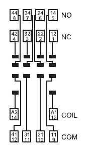 Zoccolo con morsetti a piastrina Montaggio: barra cieca 35 mm (A): 10 Colore: Nero Grado di protezione: IP 20 Accessori: Ponticello metallico;moduli di segnalazione e protezione EMC