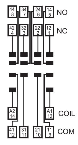 Zoccolo con morsetti a bussola Montaggio: barra cieca 35 mm (A): 10 Colore: Nero Grado di protezione: IP 20 Accessori: Ponticello metallico o plastico;moduli di segnalazione e protezione EMC;pettine 6 poli