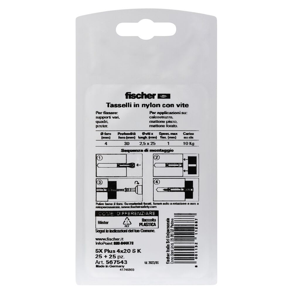 FISCHER ITALIA - FIS00567543 SX PLUS 4X20 S K TASSELLO/VITE