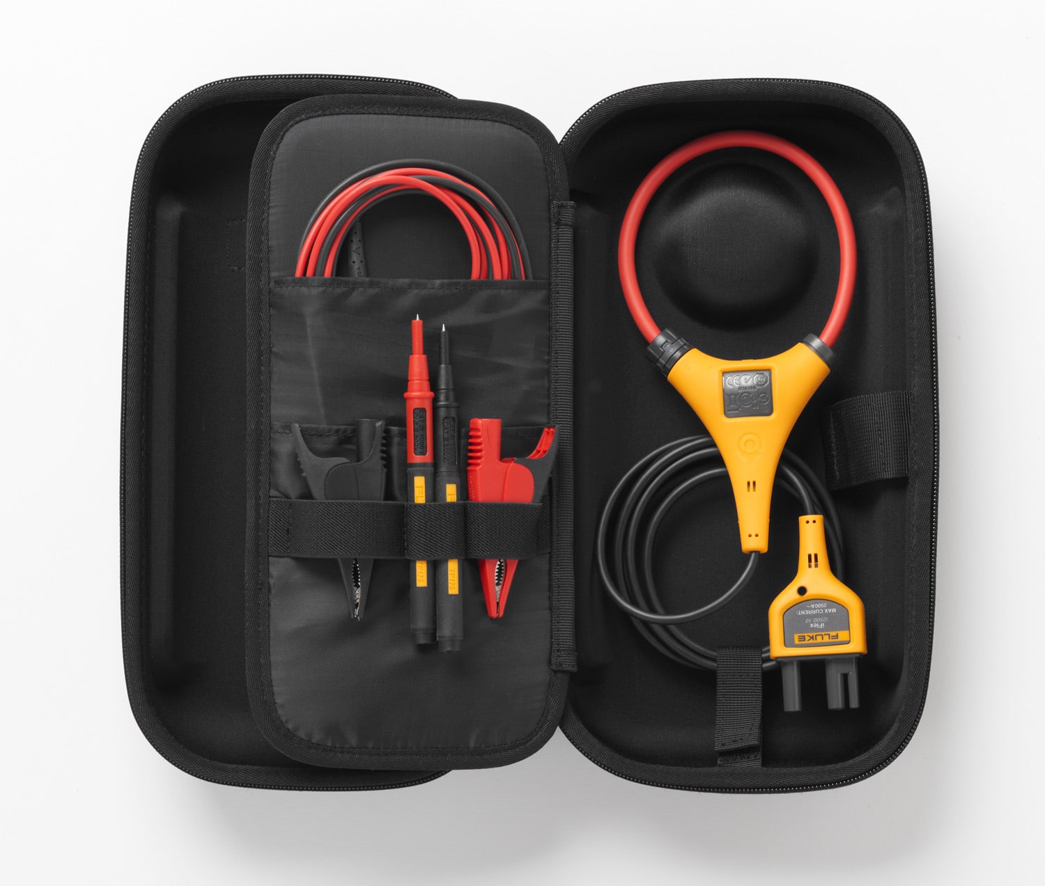La custodia protettiva rigida EVA Fluke C37XT è progettata per trasportare la maggior parte dei multimetri e altri strumenti di dimensioni simili. La custodia è fatta con schiuma EVA 600D di alta qualità ed è predisposta per contenere sia strumenti che accessori. Una volta aperta, la custodia presenta un divisorio con cerniera con cinghie regolabili per assicurare gli strumenti la loro posto. Sul lato opposto, il divisorio dispone di altre tasche, cinghie e spazio per organizzare e assicurare diversi accessori, come un iFlex e i puntali. Quali prodotti può contenere? Multimetro digitale a valore medio Fluke 83V Multimetro industriale Fluke 87V Multimetro Fluke 88V Deluxe per uso automobilistico Tester elettrico Fluke T+ Tester elettrico Fluke T+Pro Tester di tensione e continuità bipolari Fluke Multimetro wireless Fluke 3000 serie FC Multimetro termico a vero valore RMS Fluke 279 FC Tester di resistenza d'isolamento Fluke 1507 Multimetro per test di isolamento Fluke-1577 Multimetro per test di isolamentoFC Fluke-1587 Multimetro digitale industriale Fluke 27 II Multimetro digitale industriale Fluke 28 II Multimetro digitale Fluke 77 IV Calibratore di termocoppie Fluke 714B Calibratore di loop Volt/mA Fluke 715 Calibratore di temperatura Fluke 724 ProcessMeter™ Fluke 787B ProcessMeter™ Fluke 789