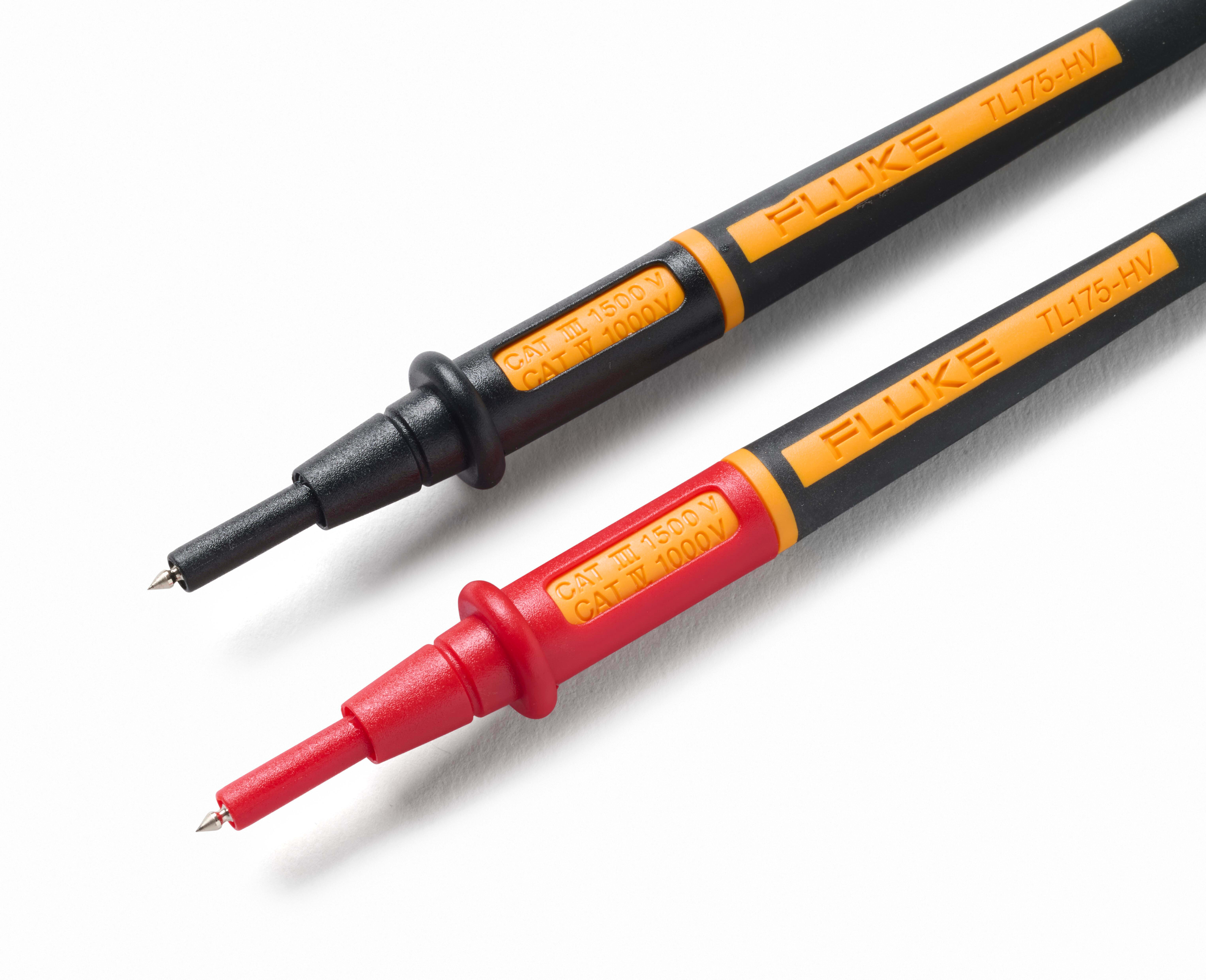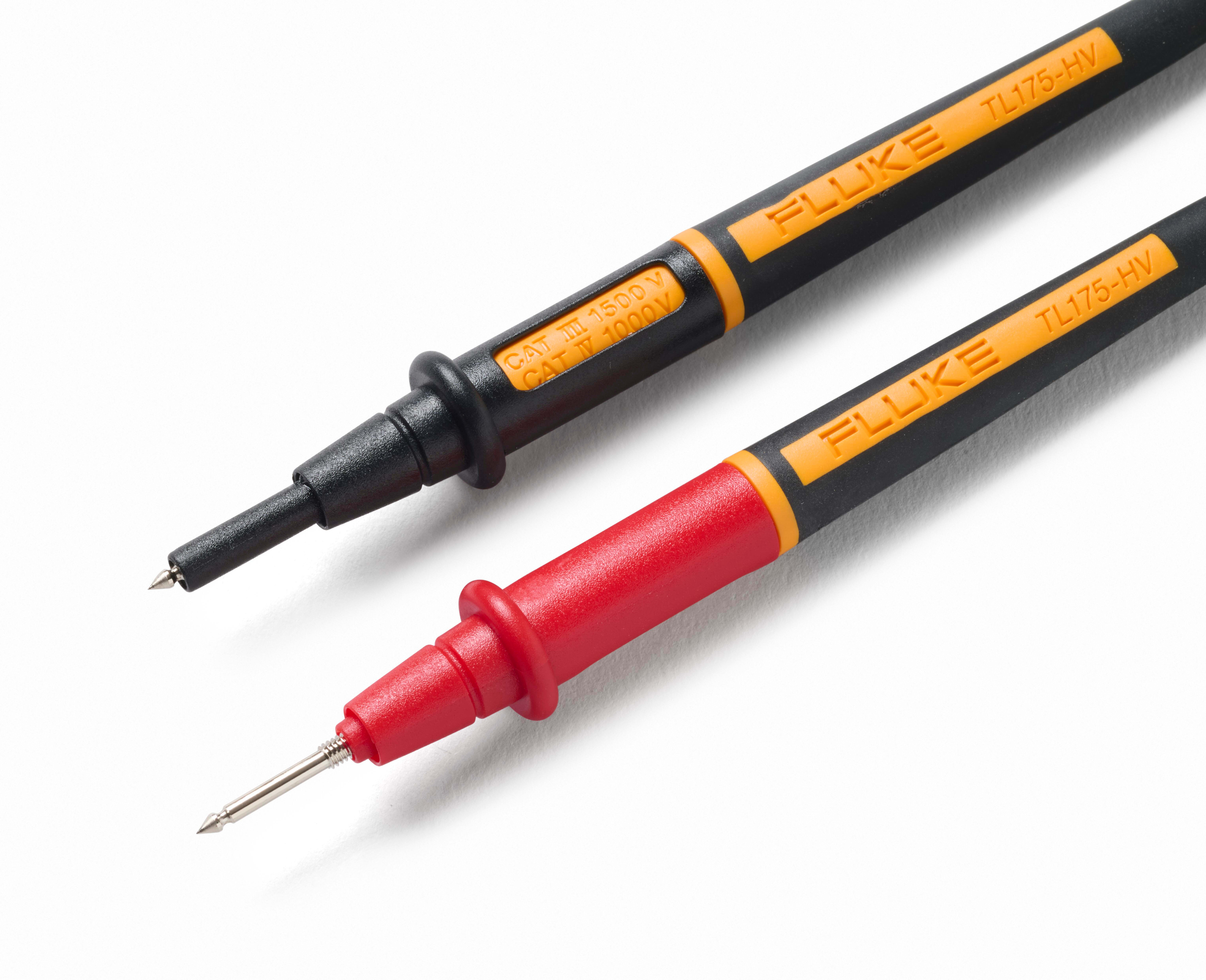 I puntali Fluke TL175-HV CAT III 1500 V TwistGuard™ sono utilizzati per i test di impianti solari ad alta tensione e sono conformi agli standard CAT III 1500 V e CAT IV 1000 V. Sono dotati della tecnologia TwistGuard™ e di un indicatore di usura WearGuard™ per un maggiore livello di sicurezza e durata.