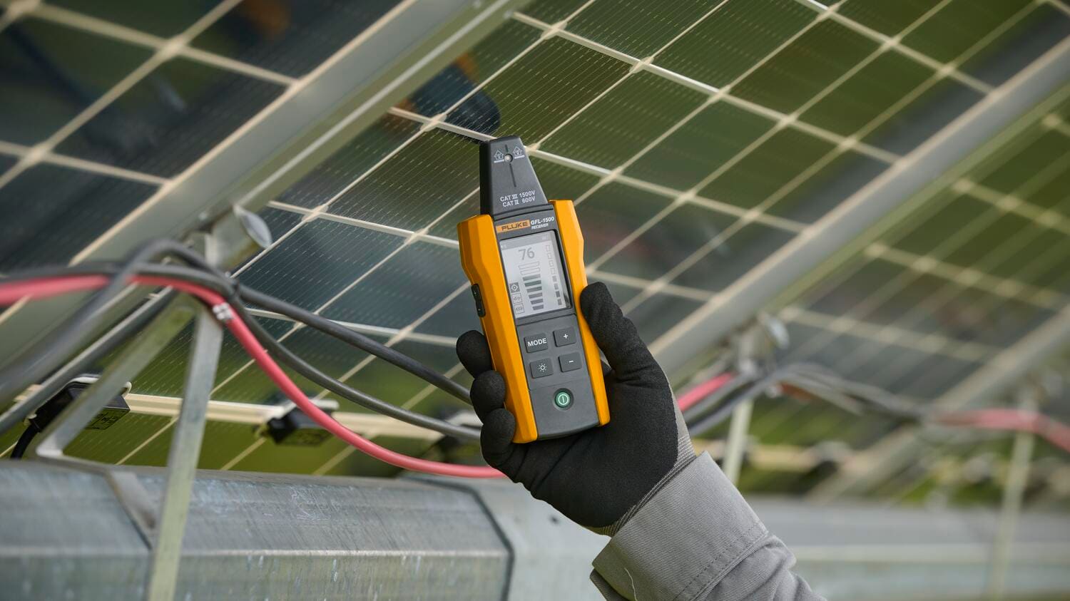 Il localizzatore di guasti a terra per impianti solari Fluke GFL-1500 consente ai tecnici di individuare rapidamente i guasti a terra attivi negli impianti FV solari a 1500 V. Tramite un segnale tracciabile senza contatto, il modello GFL-1500 semplifica l'isolamento dei guasti, riducendo i tempi di inattività e migliorando la sicurezza. Il sistema include un trasmettitore, un ricevitore e una pinza di tracciamento del segnale, ciascuno testato per soddisfare le esigenze degli impianti FV a 1500 V. Progettato per un uso rapido e intuitivo in ambienti ad alta tensione, il modello GFL-1500 aiuta i team a ripristinare le prestazioni dell'impianto solare con fiducia ed efficienza.