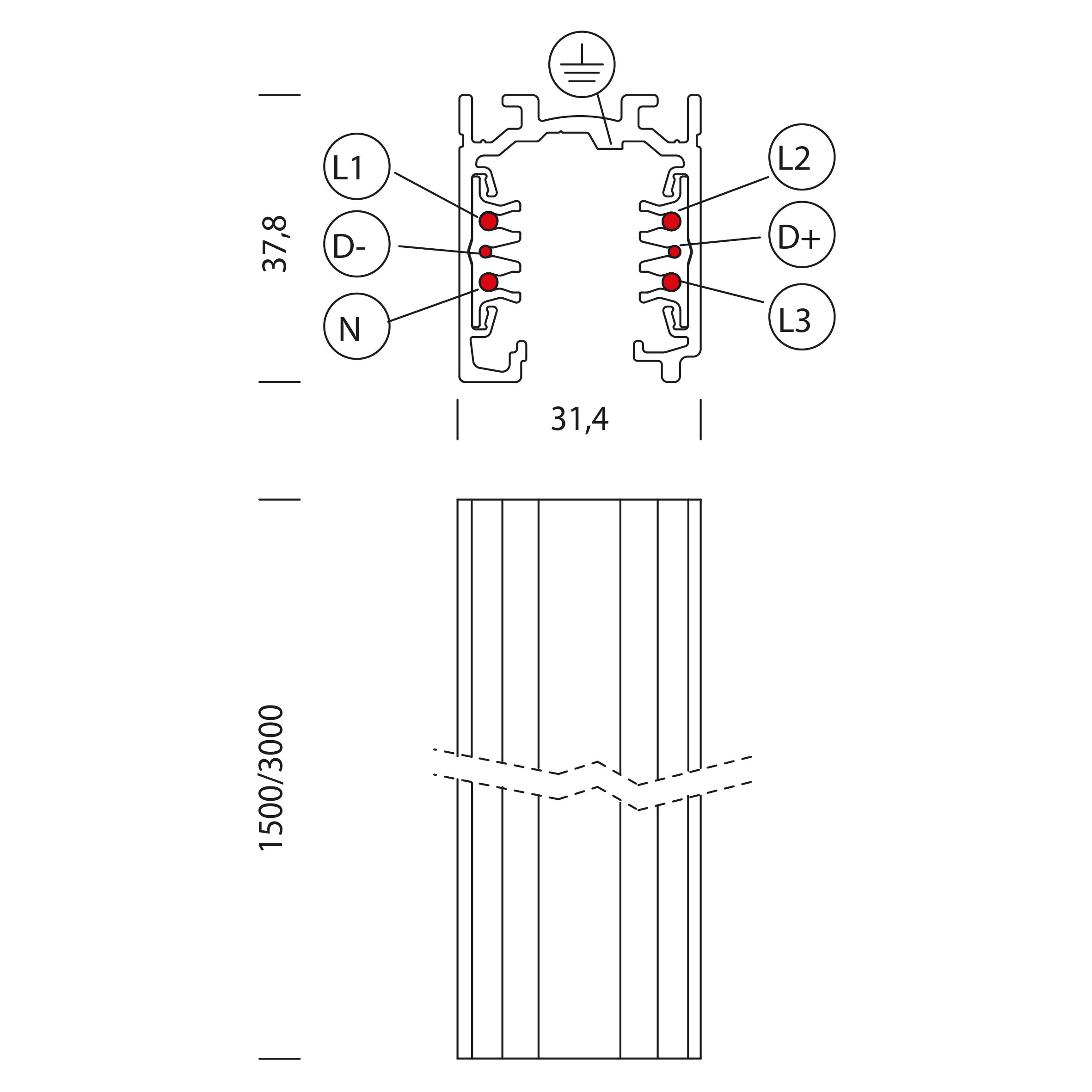 Omnitrack PLUS 6 conduttori: Il sistema binario Ominitrack PLUS è un sistema misto trifase con due conduttori aggiuntivi per la gestione di un qualsiasi segnale (per esempio DALI, DMX, ecc). Colore: bianco.
