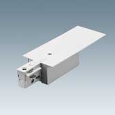 Permette l'alimentazione del binario. Ad innesto rapido con dentino di guida e accessorio per la selezione della posizione fase-neutro. Consente l'ingresso del cavo elettrico. E' possibile la giunzione lineare, l'angolo, la "T" e la croce.