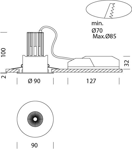 Adatto per montaggio a incasso: