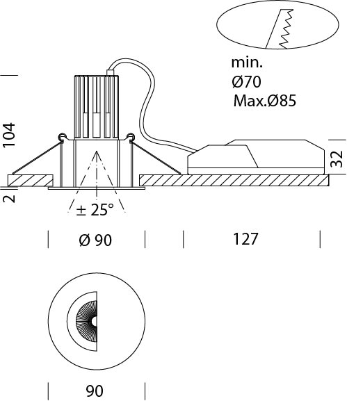 Con temperatura superficiale limitata "D" secondo EN 60598-2-24: