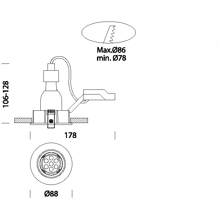 Dimmerabile tramite potenziometro (integrato nell'apparecchio):