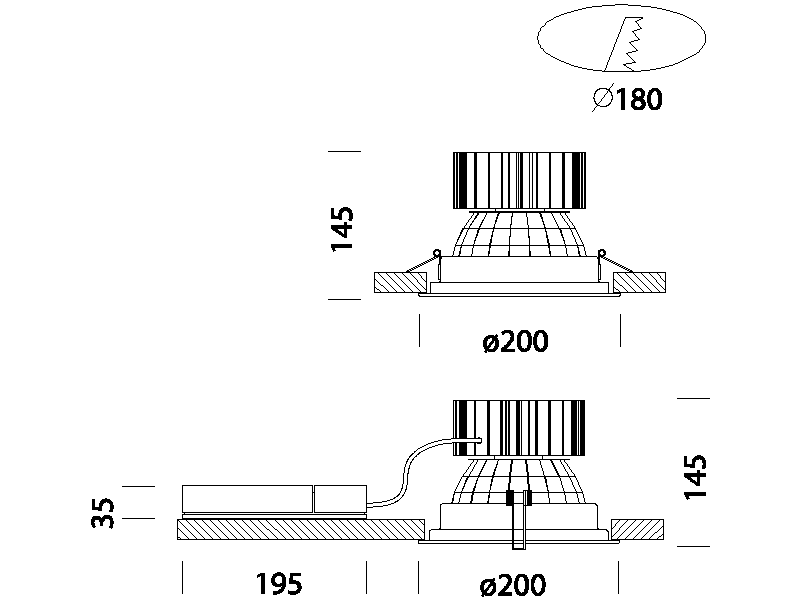 Adatto per montaggio a soffitto: