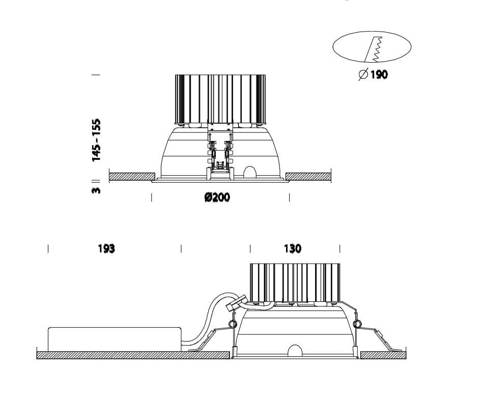 D (per montaggio in impianti industriali con pericolo di incendio per polvere o fibre EN 60598-2-24):