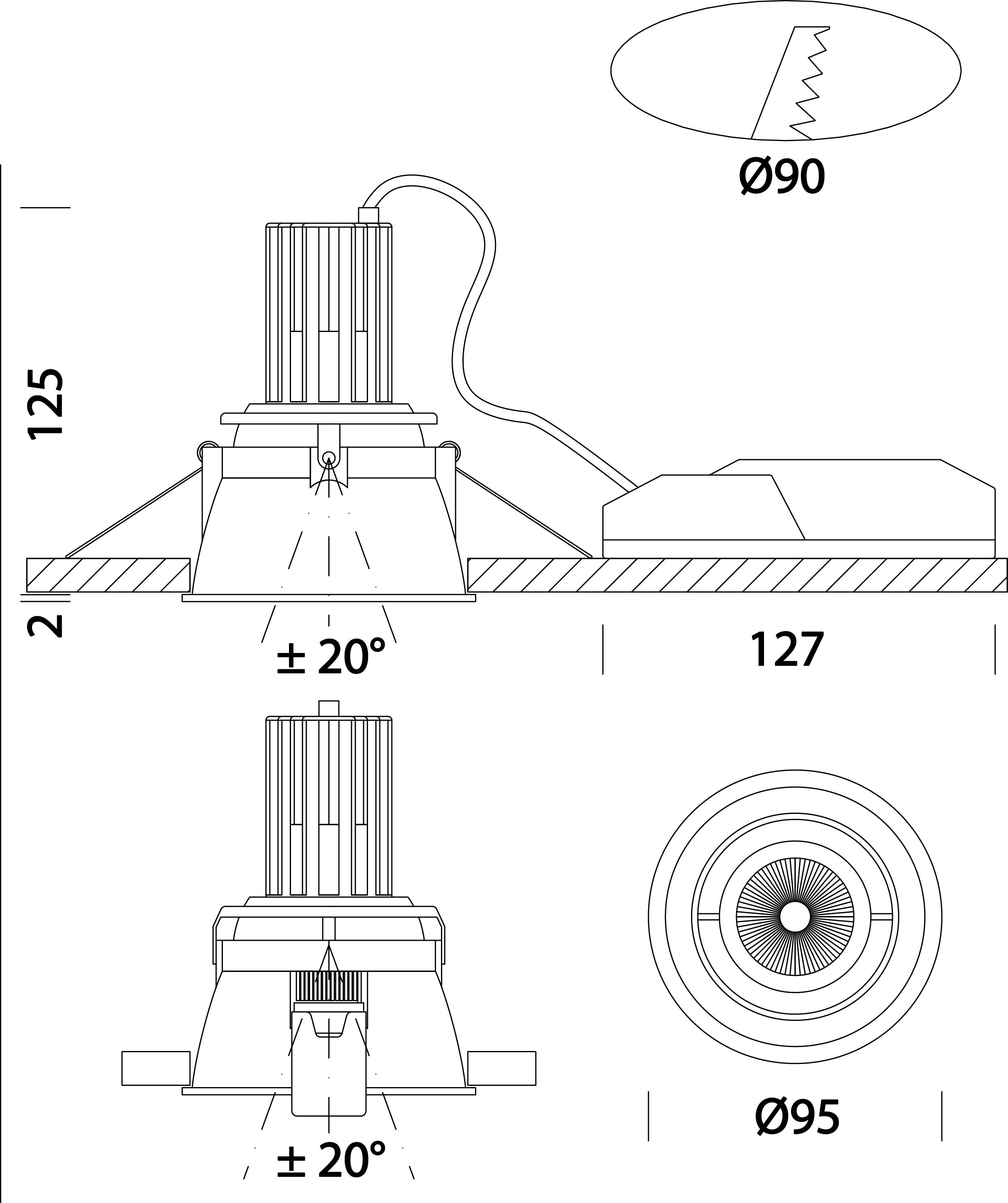 Con temperatura superficiale limitata "D" secondo EN 60598-2-24: