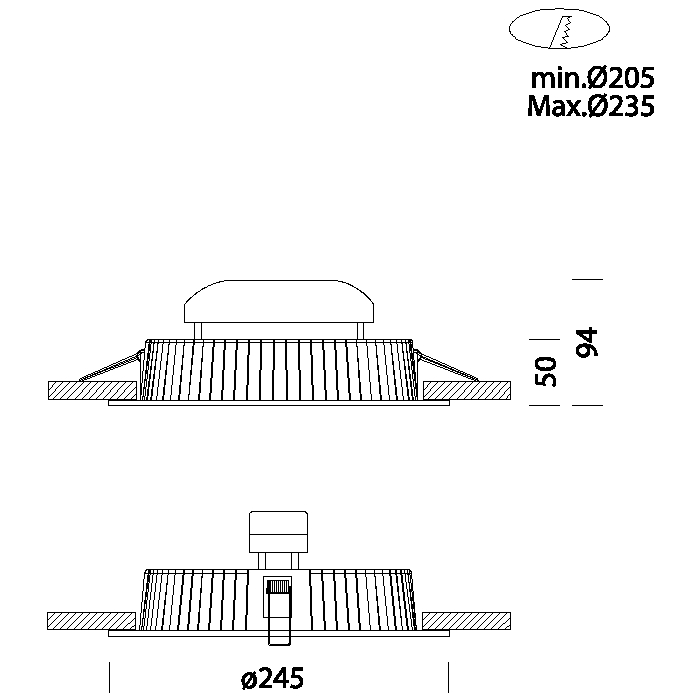 Con temperatura superficiale limitata "D" secondo EN 60598-2-24: