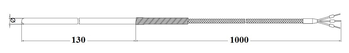termoresist. materie plastiche: Mod.: TR1 (singolo elemento) modello: senza raccordo elemento + numero fili:Singolo 4 fili classe precisione:Pt100 classe B (1 DIN) Cavo (Standard a norma DIN):TTS (0,35 mm) Materiale guaina: Acciaio Inox Diametro guaina (mm): 6 lunghezza cavo (dm):10 dm tipo di connettore:nessun connettore armatura:nessuna guaina lunghezza immersione Li (mm): 130 mm certificati: nessuno