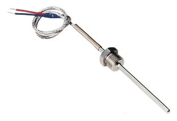 termoresist. materie plastiche: Mod.: TR1 (singolo elemento) modello: con raccordo a compresione scorrevole elemento + numero fili:Singolo 4 fili classe precisione:Pt100 classe B (1 DIN) Cavo (Standard a norma DIN):GSC (0,35 mm) Materiale guaina: AcciaioInox Diametro guaina (mm): 6 filettatura raccordo:G 1\8 Materiale raccordo: ottone nichelato lunghezza cavo (dm):80 dm tipo di connettore:nessun connettore armatura:nessuna guaina lunghezza immersione Li (mm): 200 mm certificati: nessuno