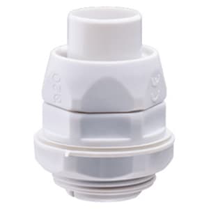 Raccordo girevole dritto con passo gas, per raccordare guaine spiralate con scatole di derivazione in fori filettati con passi GAS o fori non filettati, mediante il dado e la guarnizione in dotazione.
