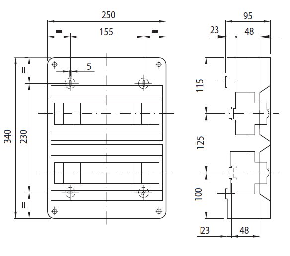Centralino predisposto per alloggiamento morsettiere , termopressione con biglia pari a 70° C Dotazione: Mascherina coprimoduli, etichette utenze.