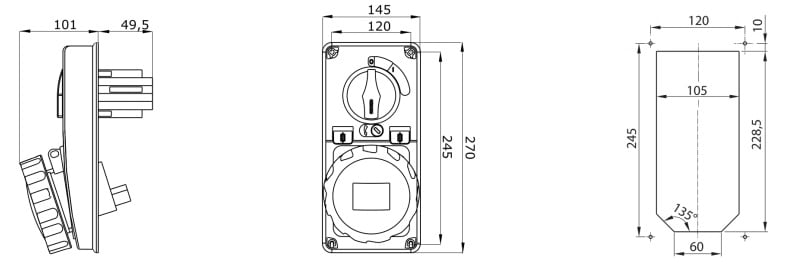 GEWISS - GEWGW66354N PR.BL IP67 S.F.3P+T 63A 500V 7H CBF