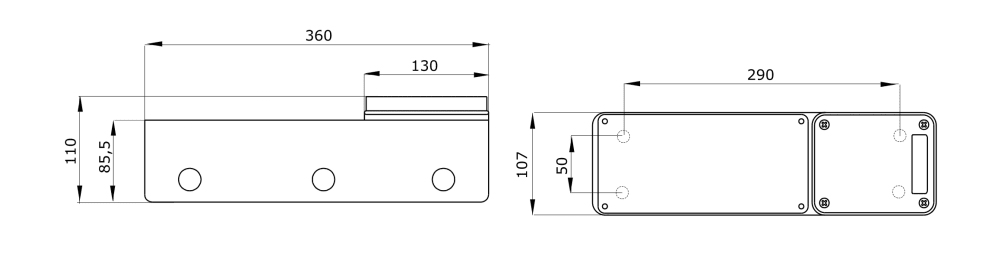 Base modulare in plastica per montaggio in batteria di prese fisse verticali - IP55. N°1 presa IB alloggiabile 16/32 A. N°2 entrate laterali diametro 23 mm. N°2 entrate superiori diametro 23 mm.