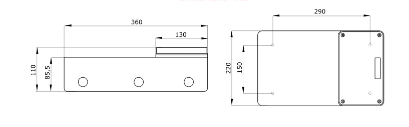 Base modulare in plastica per montaggio in batteria di prese fisse verticali - IP55. N°2 prese IB alloggiabili 16/32 A. N°4 entrate laterali diametro 23 mm. N°4 entrate superiori diametro 23 mm. N°1 entrata inferiore diametro 29 mm.