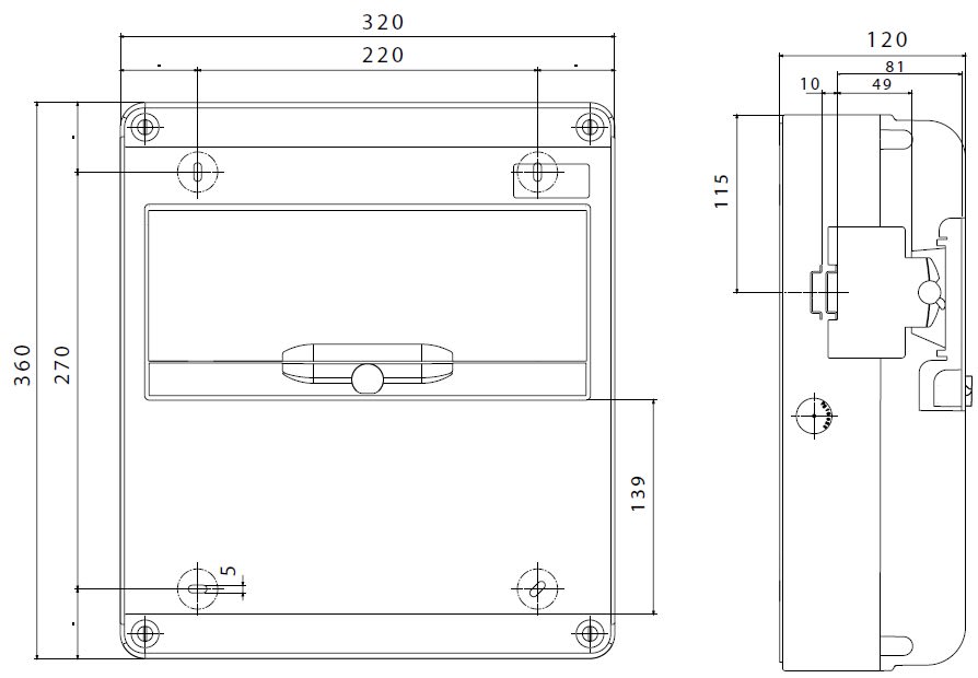 Quadro stagno Q-DIN 14 moduli vuoto in plastica grigio RAL 7035 IP65. • Numero di IEC 309/IB alloggiabili: 3 IEC 309 16/32 A IP 44/67 • Numero di coperchi ciechi in dotazione: 1 IEC 16/32A