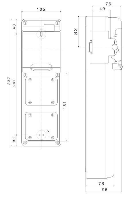 Quadro stagno Q-DIN 5 moduli vuoto in plastica grigio RAL 7035 IP65. • Numero di calotte: 2 IEC 309 16A IP44/67