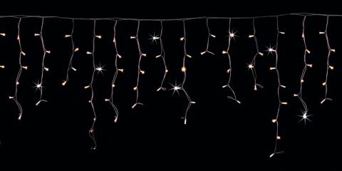 Tenda sfalsata 180 Led bianchi caldi ultraluminosi con 36 ministrobo bianchi, prolungabile, per esterno. Larghezza tenda 3m, altezza max tenda 1m, cavo di alimentazione bianco 1,5m con spina Schuko