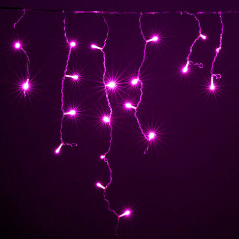Tenda sfalsata 180 Led viola ultraluminosi con 36 ministrobo bianchi, prolungabile, per esterno. Larghezza tenda 3m, altezza max tenda 1m, cavo di alimentazione bianco 1,5m con spina Schuko