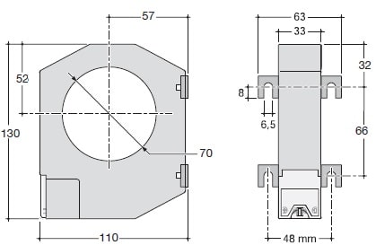 Toroide circolare, dal diametro di 70 mm, specificamente ideato per operare con i relè della serie HR5xx. Con una portata di 200 A, garantisce un efficace intervento in caso di guasto a terra. Per assicurare la massima efficacia e un intervento tempestivo del relè in caso di guasto, è fondamentale che i conduttori di passaggio attraversino centralmente il toroide.