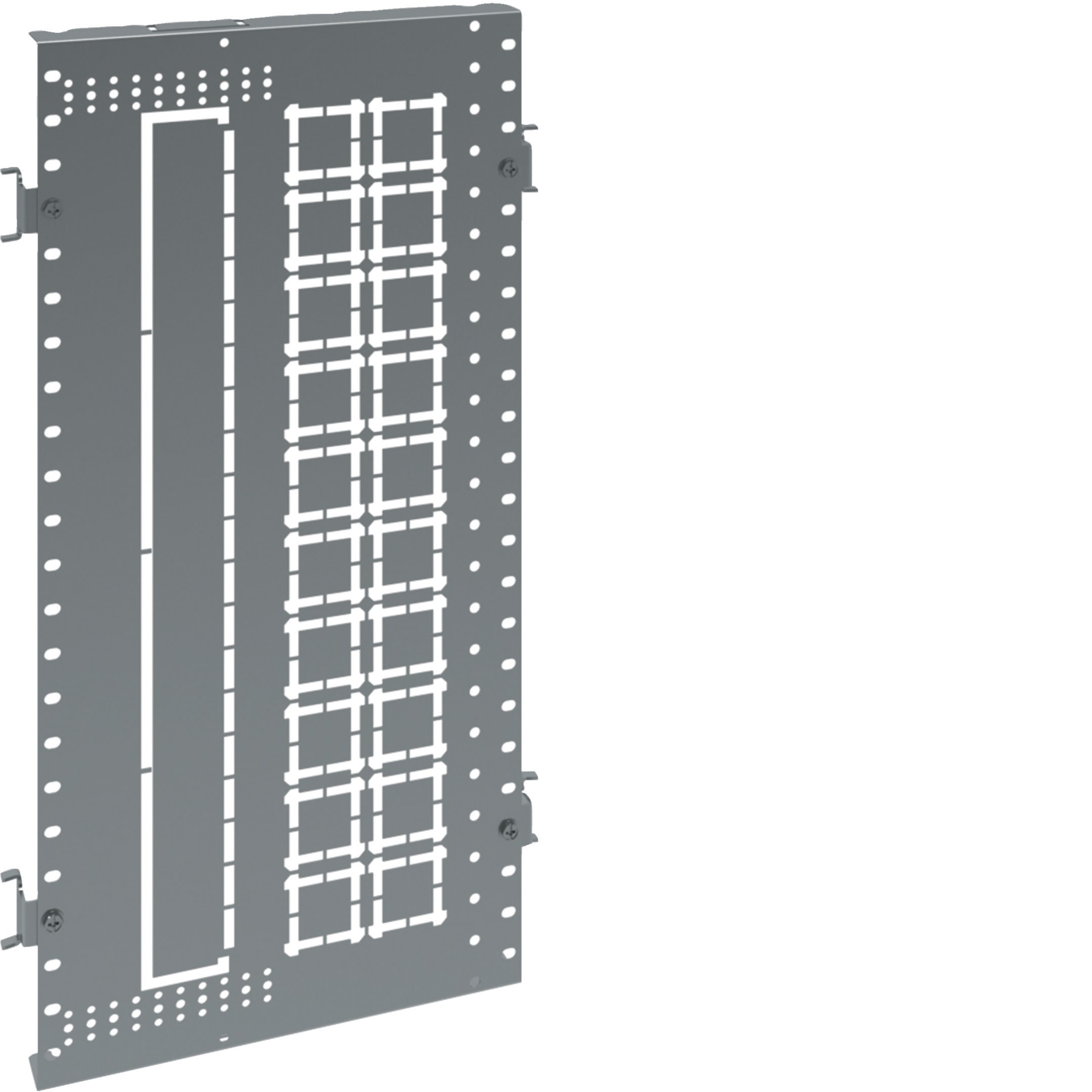 La segregazione laterale totale per quadro evo, altezza 600 mm e profondità 400 mm, è ideale quando non si utilizzano montanti funzionali e con interruttori aperti. Si fissa saldamente tra montanti anteriori e posteriori grazie agli accessori inclusi. Lepretranciature facilitano il passaggio ordinato di barre e cavi, mentre le forature garantiscono una ventilazione naturale efficiente.