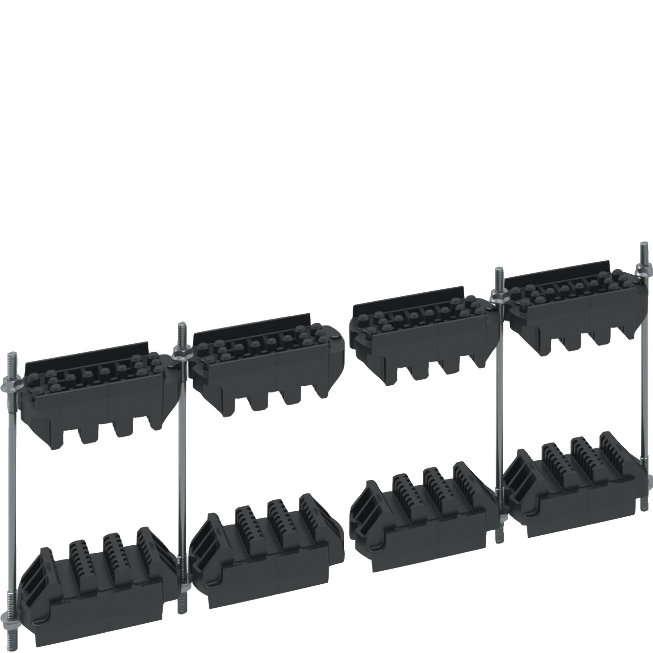 Kit da 8 supporti per barre a 4 poli con tiranti, ideali per il montaggio di tre barre per fase da 10 mm nei quadri evo. Compatibile con barre in rame o alluminio, offre un supporto stabile e sicuro. Il kit include 8 isolatori resistenti e 8 tiranti in acciaio inox, adatti a barre con altezza da 30 a 120 mm. Il fissaggio semplice su staffe preforate assicura un’installazione rapida e una tenuta affidabile.