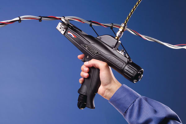 L'utensile pneumatico MK9P è realizzato con materiali resistenti per assicurare ottime performance negli ambienti difficili. Disegnato in maniera specifica per l'applicazione di fascette per impieghi pesanti (T50-T250). Stessa ottima ergonomicità della MK7P. Leggerezza, impugnatura confortevole e basso sforzo dell'operatore. Molto resistente, regolazione della tensione di facile lettura per l'operatore. Possibilità di regolazione della tensione. Viene fornito con la connessione per l'aria compressa posizionata in basso, su richiesta viene fornito con la connessione in alto. L'utensile pneumatico MK9P è realizzato con materiali resistenti per assicurare prestazionioni ottimali. E' ideale per le applicazioni nella costruzione dei mezzi pesanti e nell'industria ferroviaria.